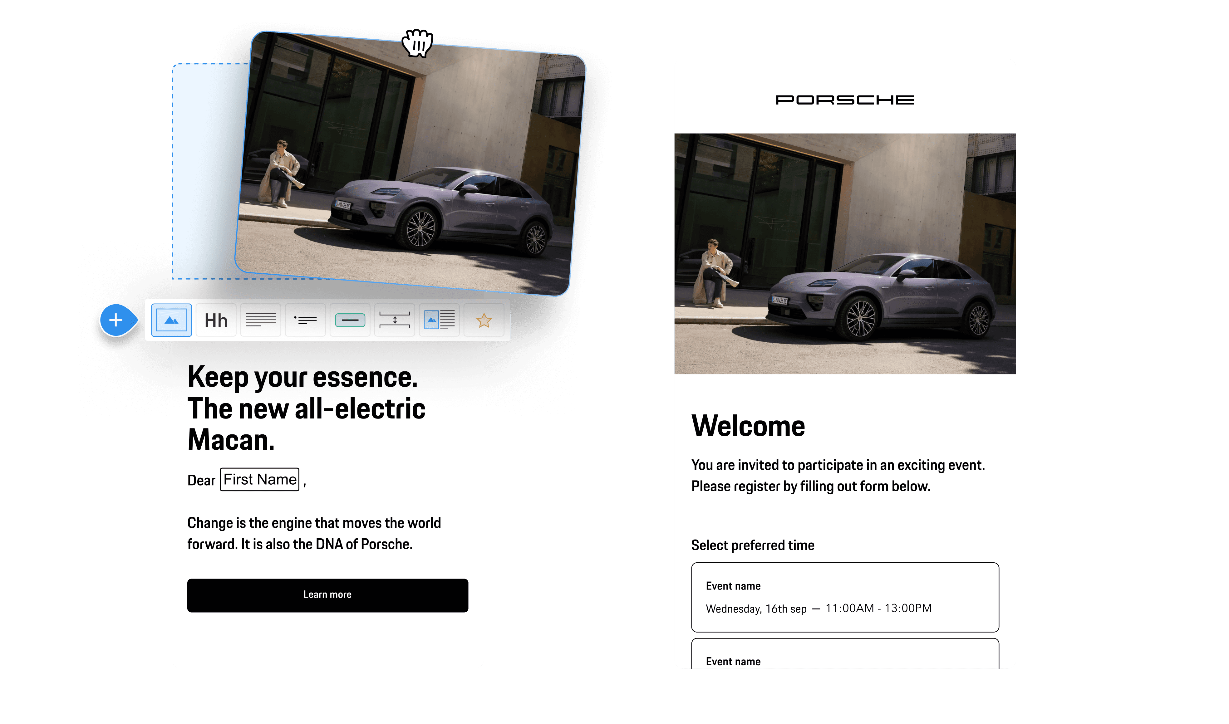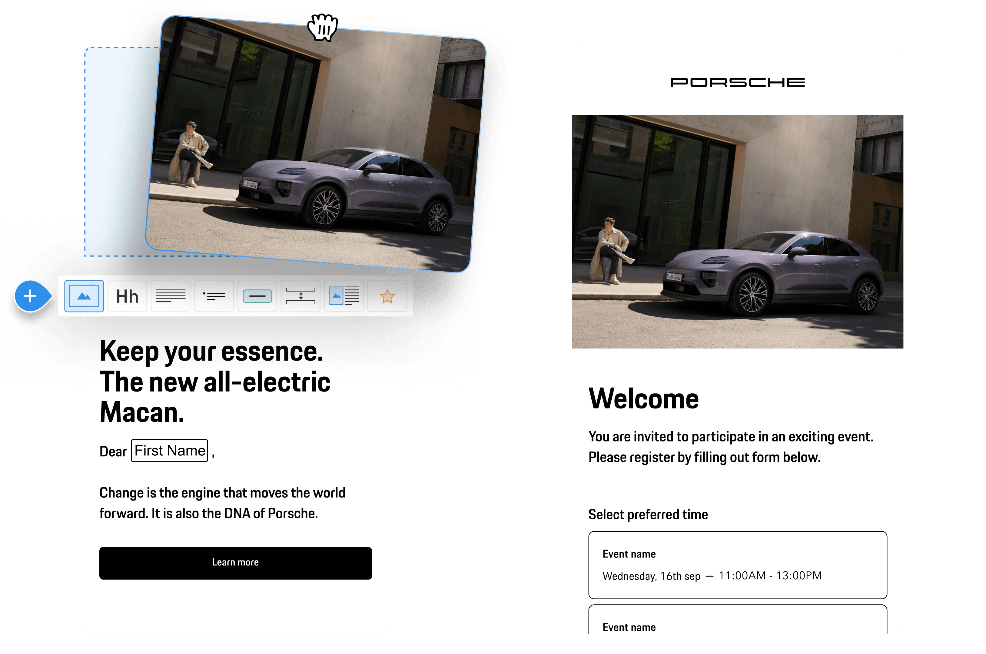 Outlook’s text-heavy, non-image-based format meant internal communications failed to reflect Porsche’s iconic heritage and brand standards.The reliance on Outlook further compounded these challenges. Formatting issues were common, emails lacked brand consistency, and the recipients' experience was unpredictable.